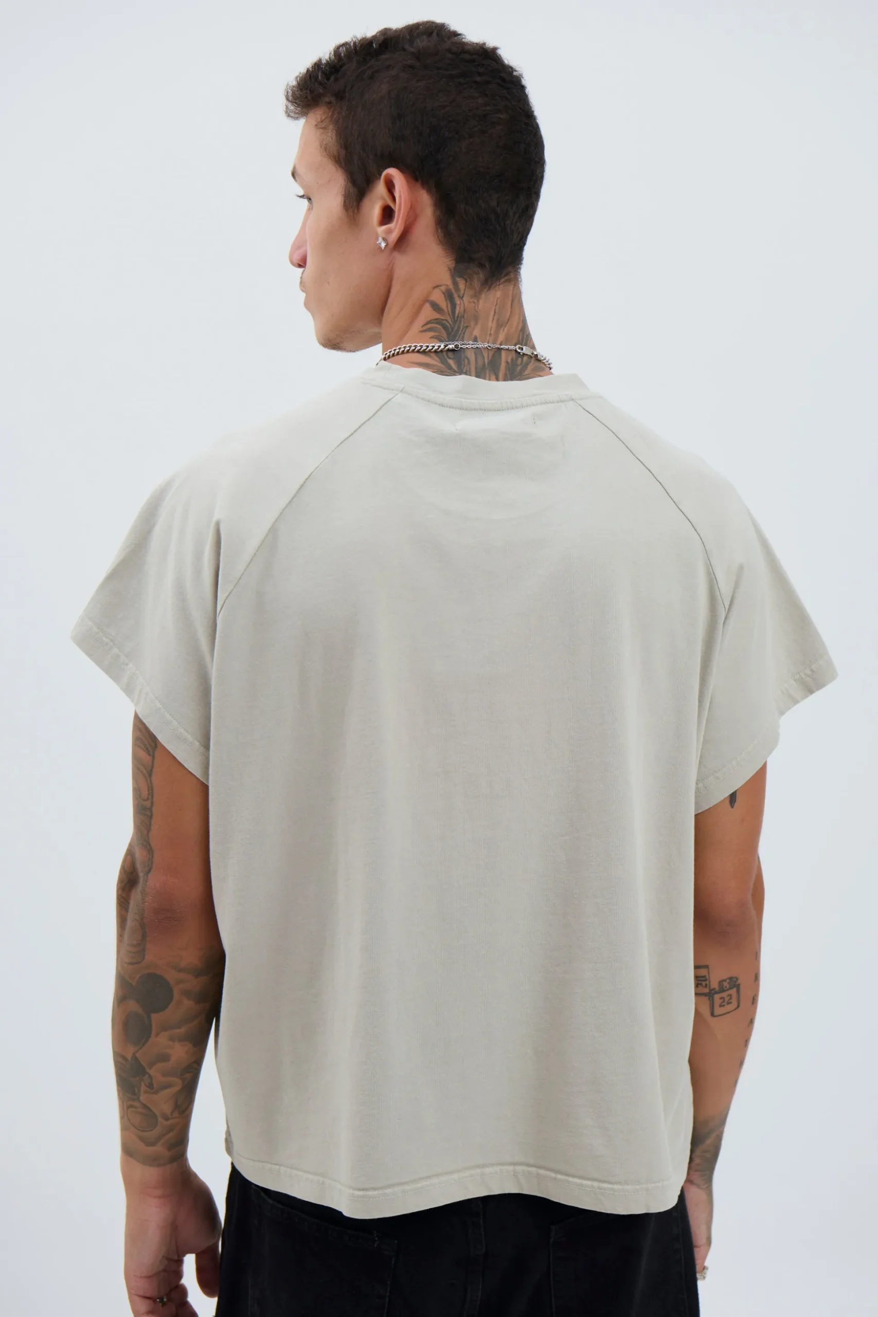 The Raglan Crop Box Tank, cropped tank made from 100% cotton (250 GSM) for a premium feel. Features a crew neck, drop shoulders, and a slightly oversized fit for a relaxed, modern look.