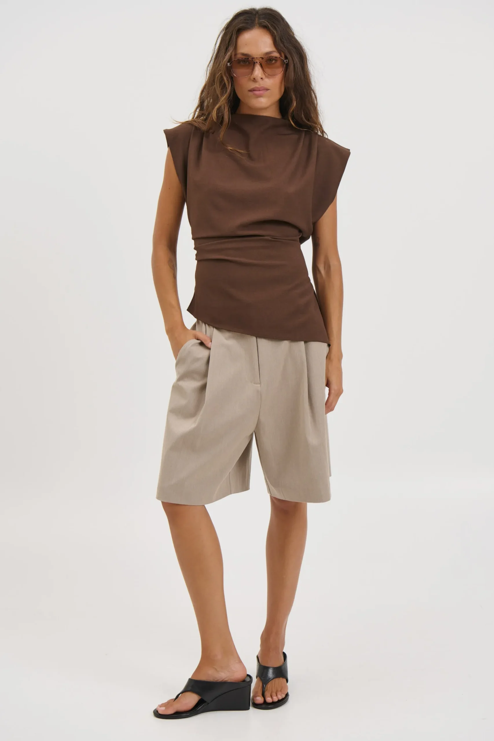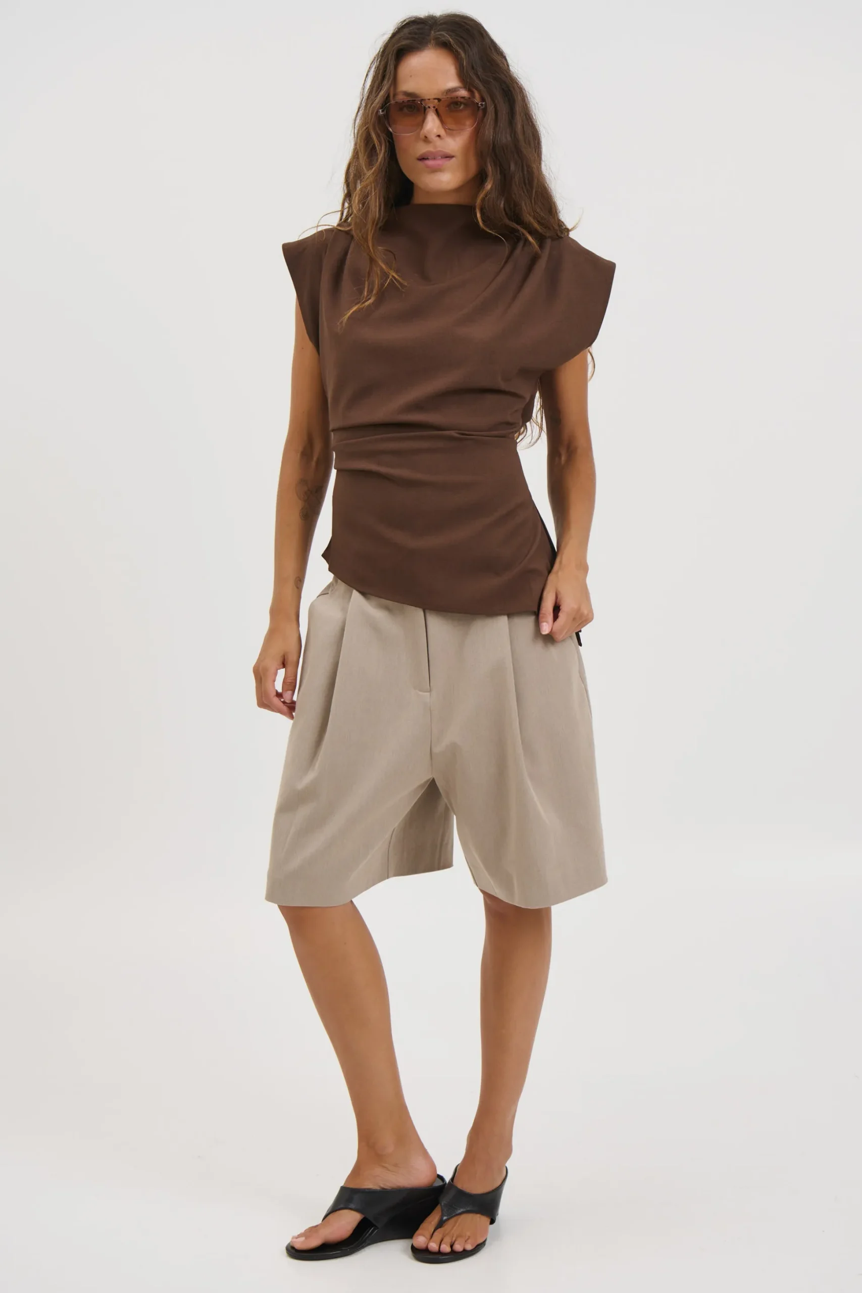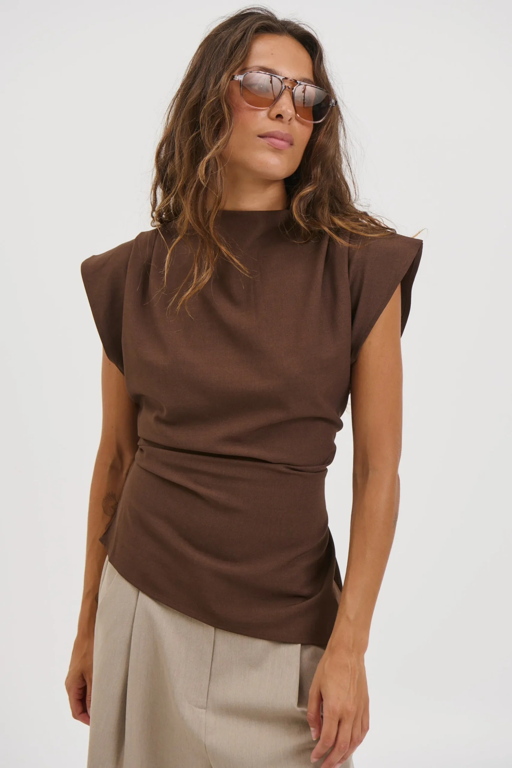 Meet the Ryan Top, features soft ruching at the side and a striking asymmetrical hemline for added dimension. A concealed back zip closure completes the look with a clean, polished finish.