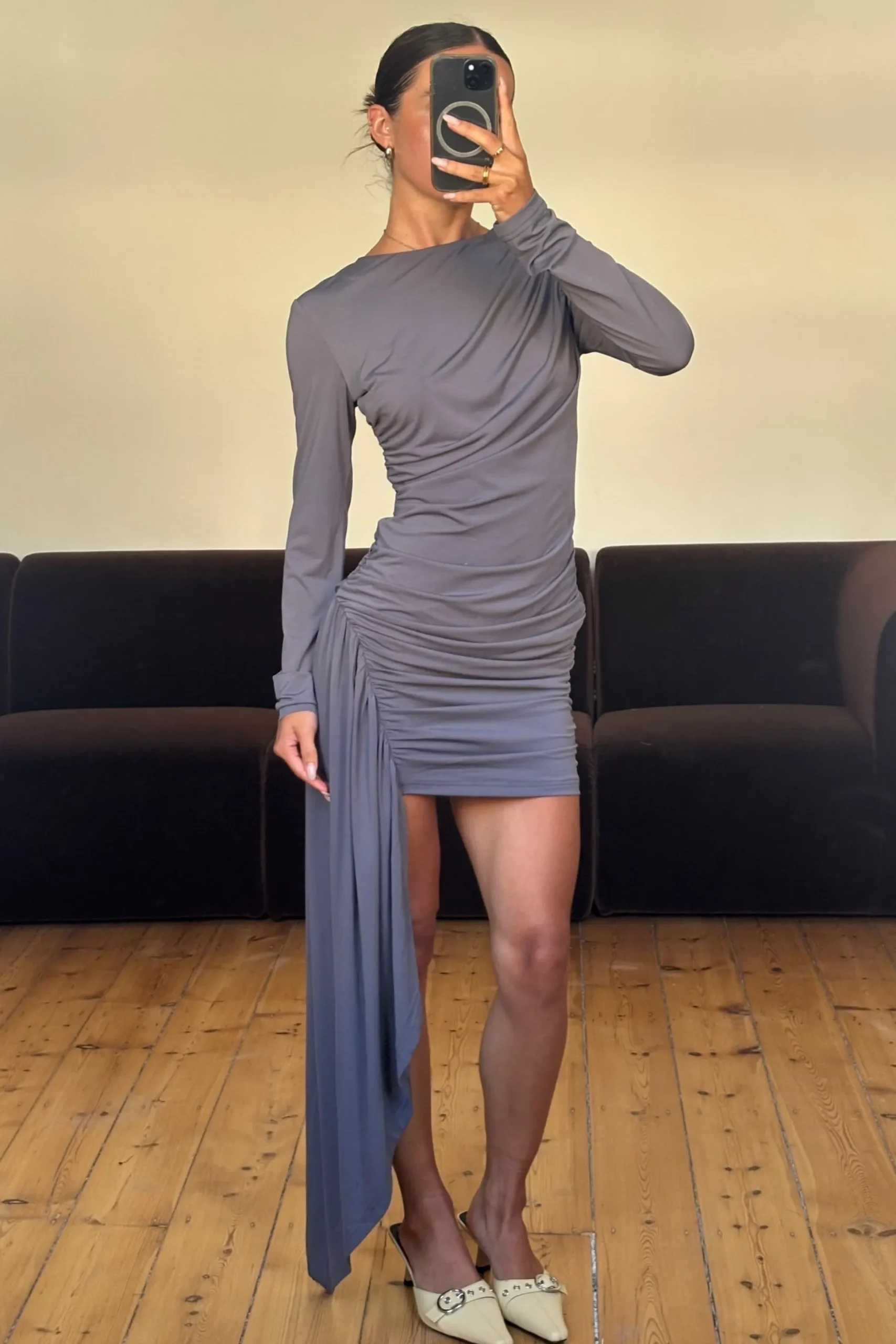 Meet the Sandy Mini Dress, featuring a unique dangling drape for movement and drama. The fitted silhouette hugs your curves while the flowing detail adds a playful, fashion-forward edge. Perfect for evenings out or special occasions, this dress combines elegance with contemporary flair.