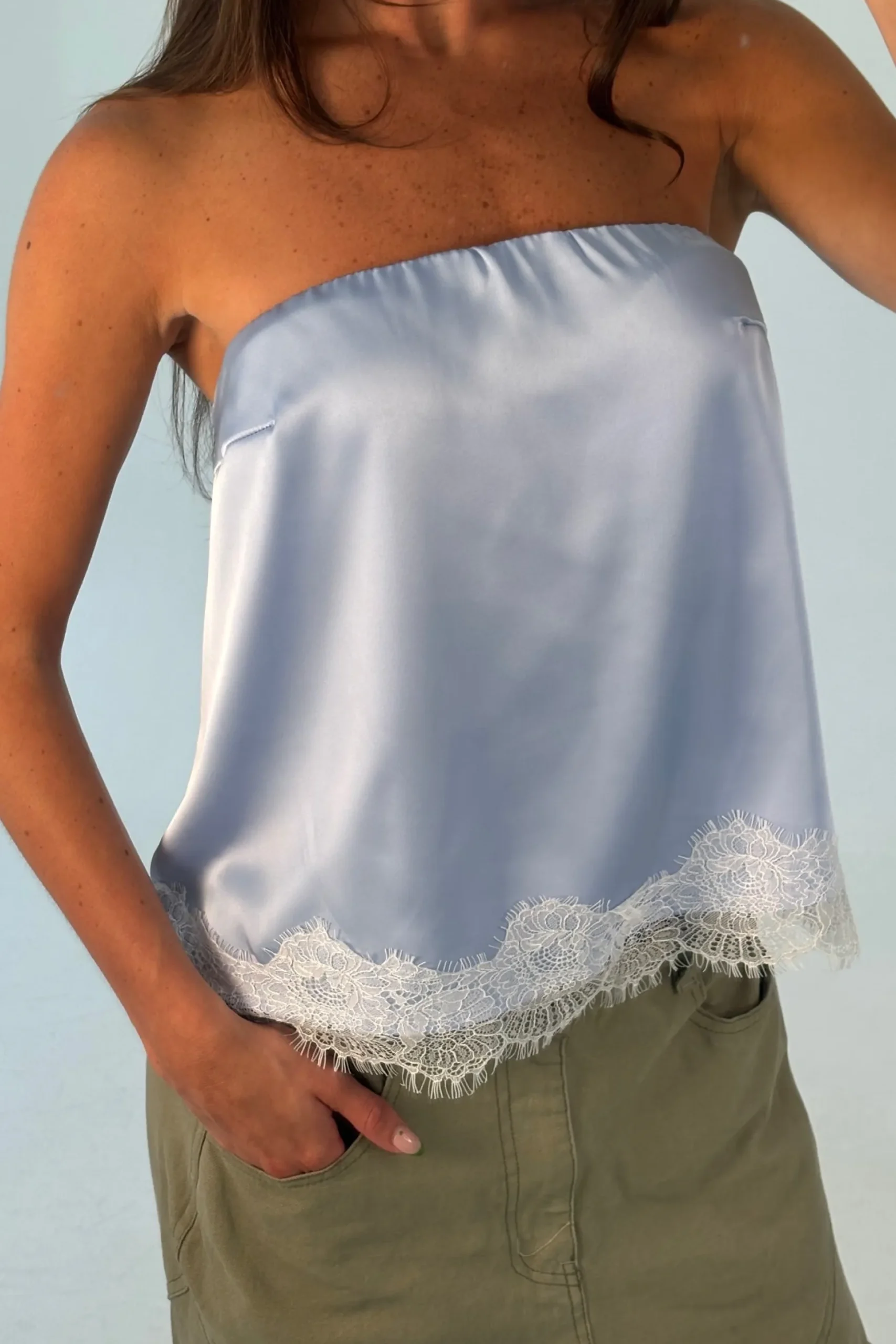 Meet the Stassie Strapless Top, features a sleek strapless neckline for a clean, modern look. The elasticated back band offers comfort and a secure fit, while the side zip closure ensures easy wear. Cut to a flattering cropped length, it’s finished with a delicate lace hemline that adds soft texture and feminine charm.