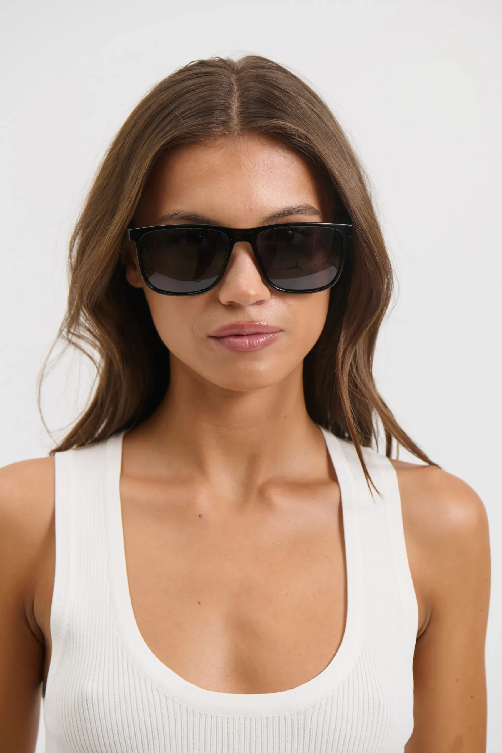 These sunglasses feature a classic aviator-inspired silhouette with a modern twist. Designed in a rich tortoiseshell frame, they offer a timeless yet contemporary appeal