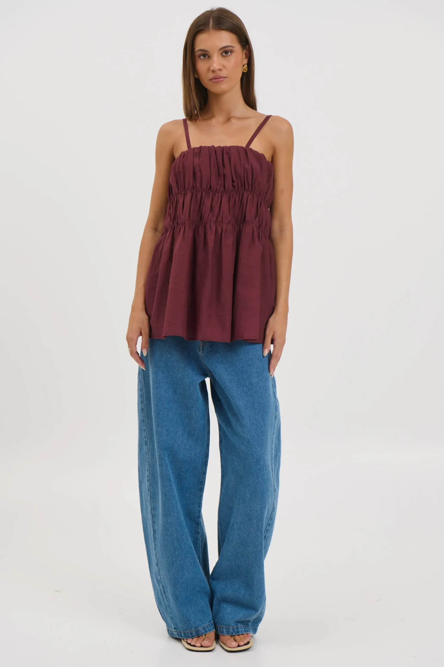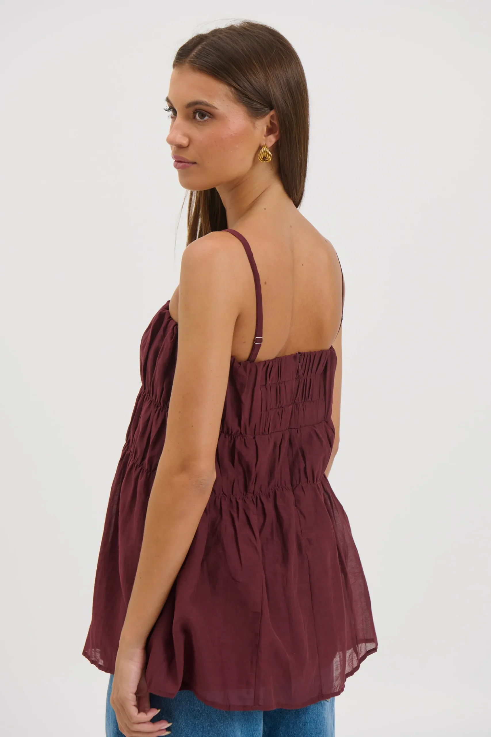 Meet the True Cami, featuring delicate adjustable spaghetti straps and a flattering tiered silhouette. The shirred detailing adds gentle texture and shape, creating an easy, flowy fit through the body. Fully lined for comfort and coverage, this piece is perfect for warm days and effortless layering.