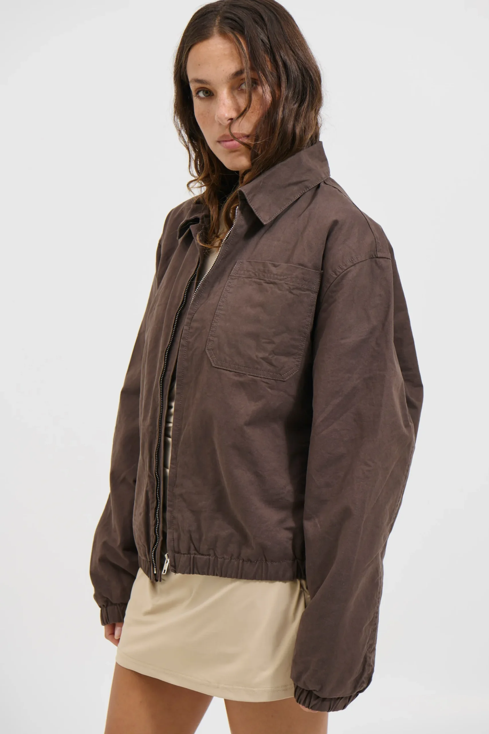Meet the Charlie Soft Cotton Bomber. Elevate your casual wardrobe with this soft bomber jacket, designed with a slightly oversized fit for a relaxed yet stylish silhouette. Crafted from a smooth, lightweight fabric, it features a classic zip-up front, cuffed sleeves for a snug finish, and a roomy front pocket for a functional touch.