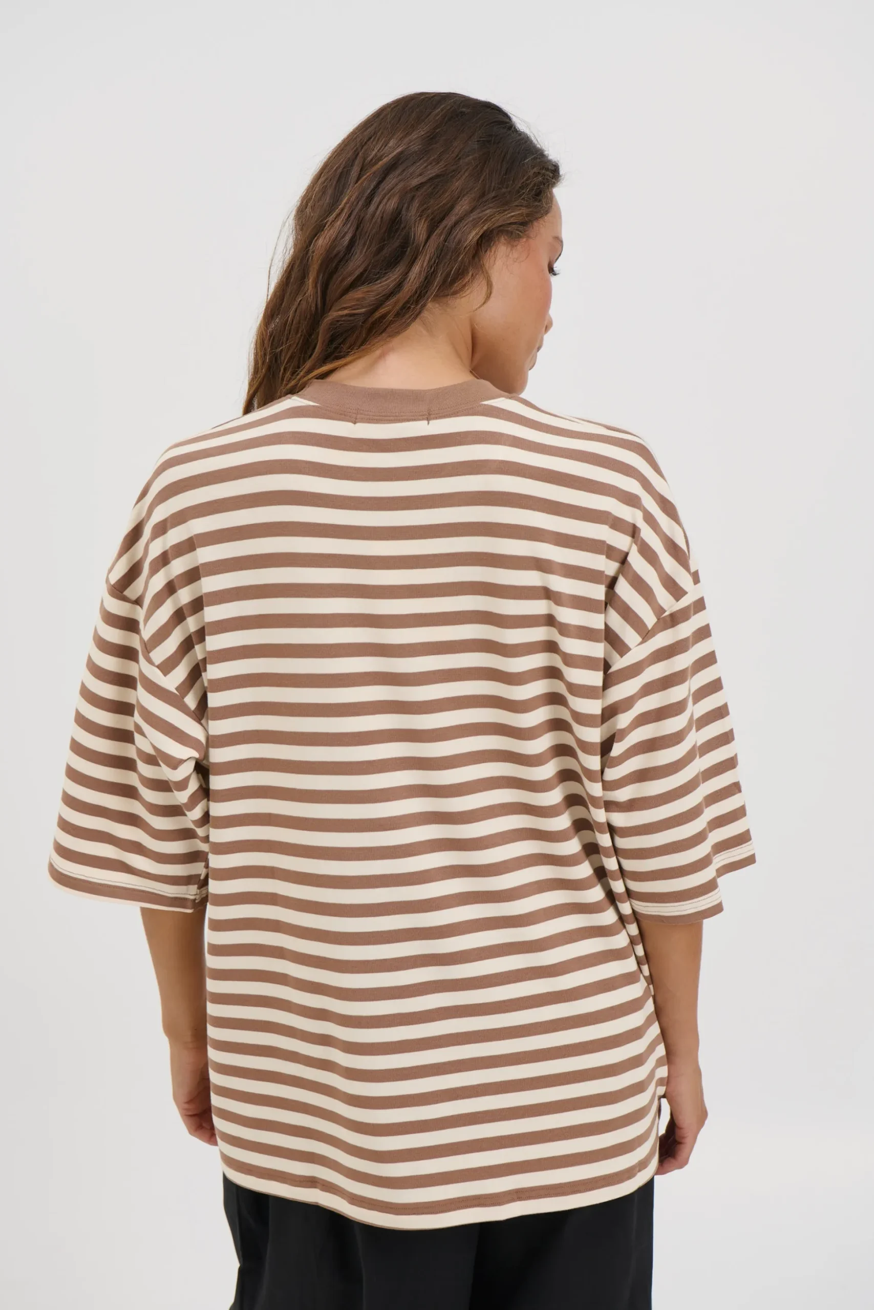The Lesley Stripe Crew Tee, Featuring an oversized tee with a classic crew neckline, this relaxed style brings effortless comfort and a laid-back vibe. Designed with bold stripe detailing, it’s the perfect throw-on piece for easy everyday wear.