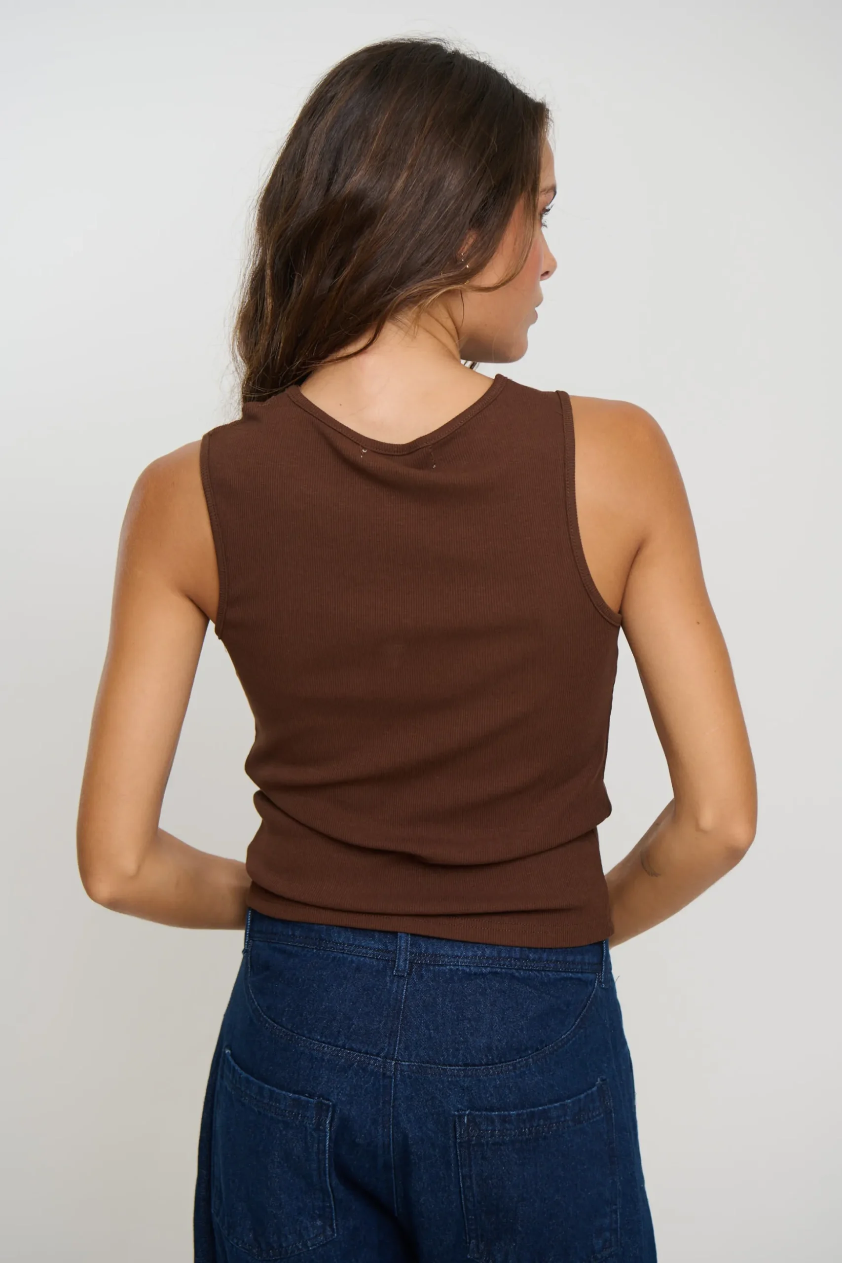 Meet the Veronika Tank, Featuring a contemporary ribbed tank crafted for effortless style, this top showcases a high neckline and a chic keyhole shoulder cutout.