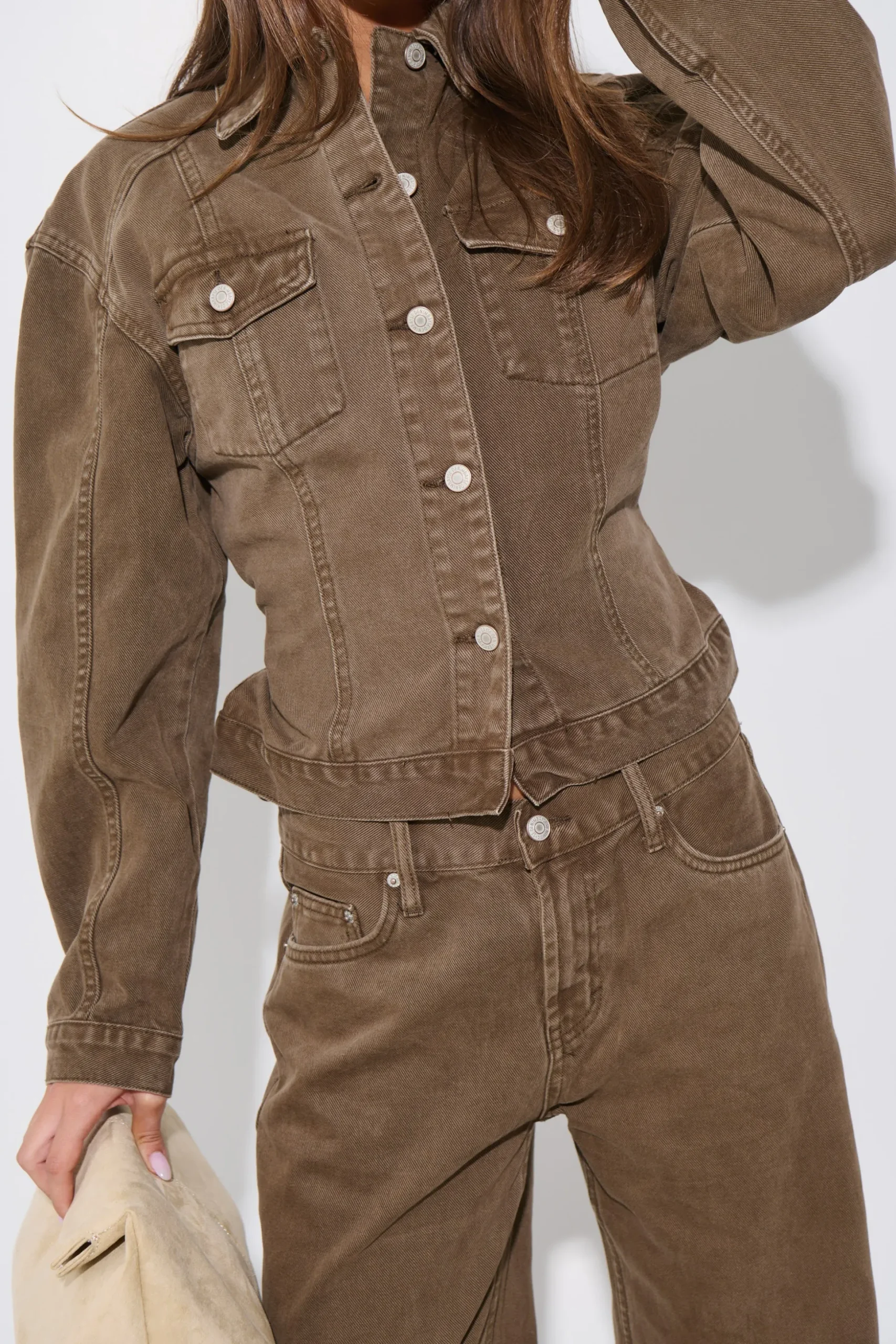 Meet the Violet Denim Jacket, a structured denim essential with a modern edge. Featuring a cinched waist, bold hardware detailing, and an adjustable back tab, this piece is crafted from premium mid-wash denim for a polished yet relaxed feel.