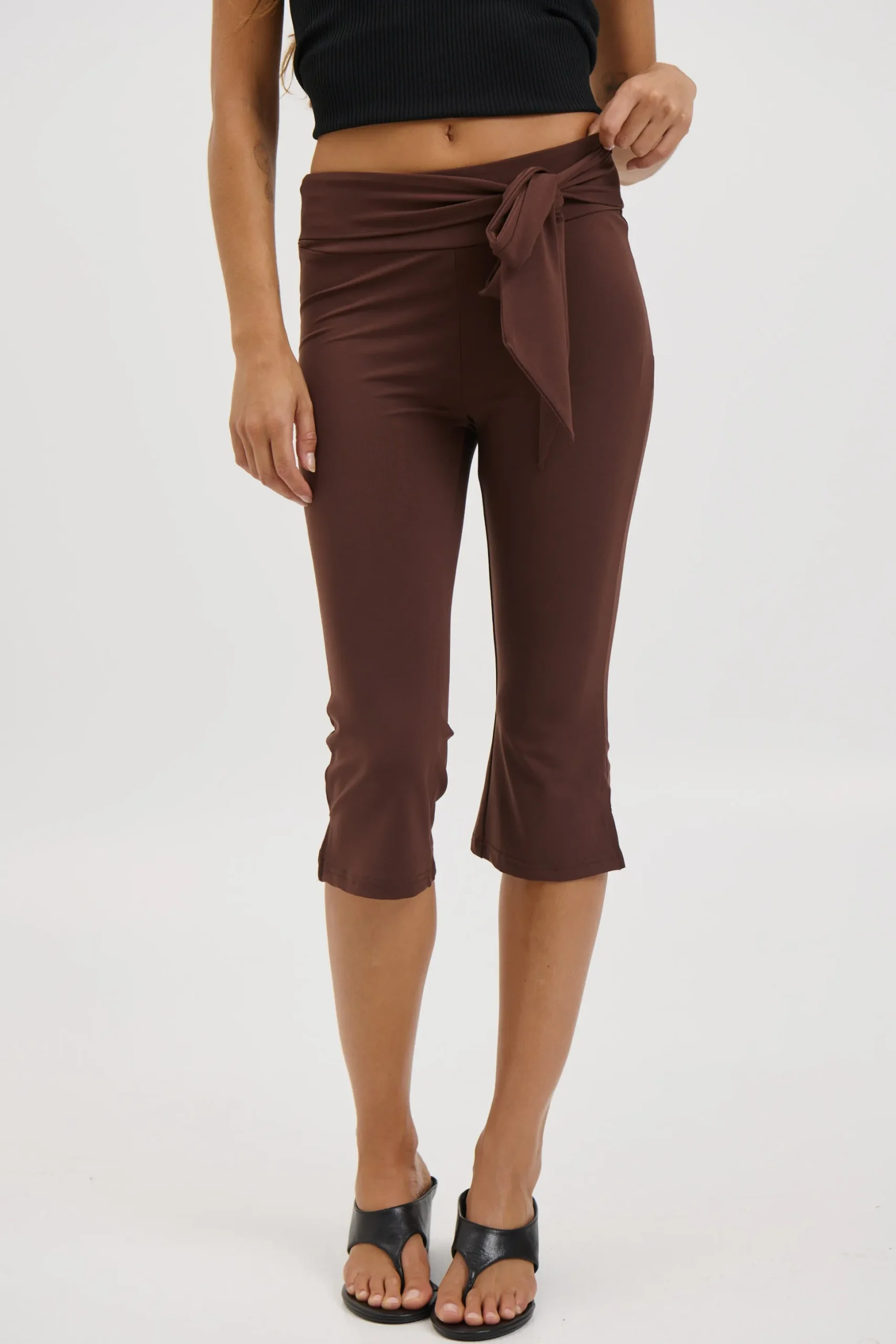 Meet the Winona Capri, designed with a slight flare at the hem for a flattering, modern silhouette. Crafted from a stretchy fabric, they move with you for all-day comfort, while the adjustable tie waist adds a touch of relaxed sophistication.