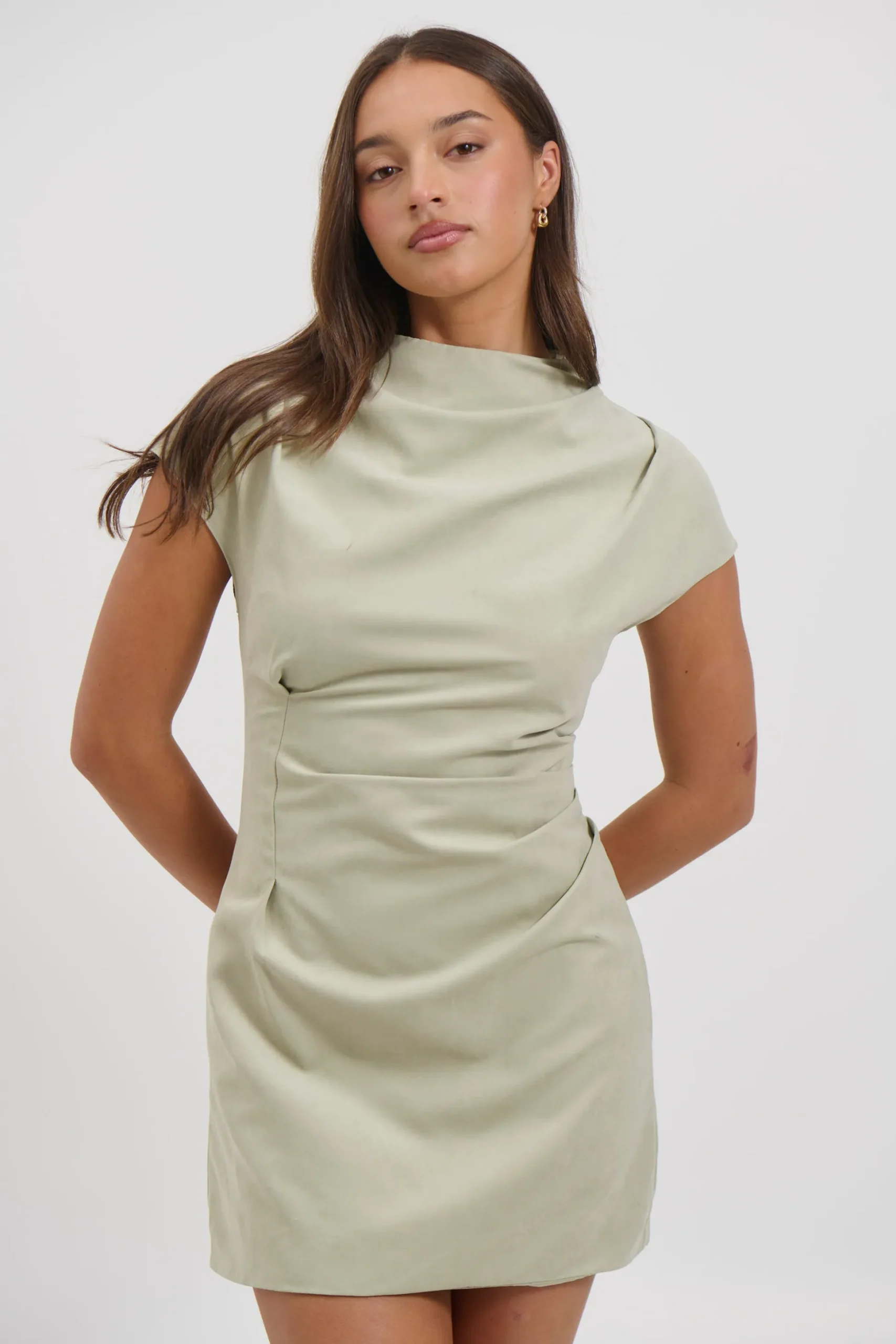 Meet the Ziah Mini Dress, designed with cap short sleeves and a sophisticated high neckline. The side ruched detailing flatters your figure, while the back zip closure ensures a smooth, tailored fit.